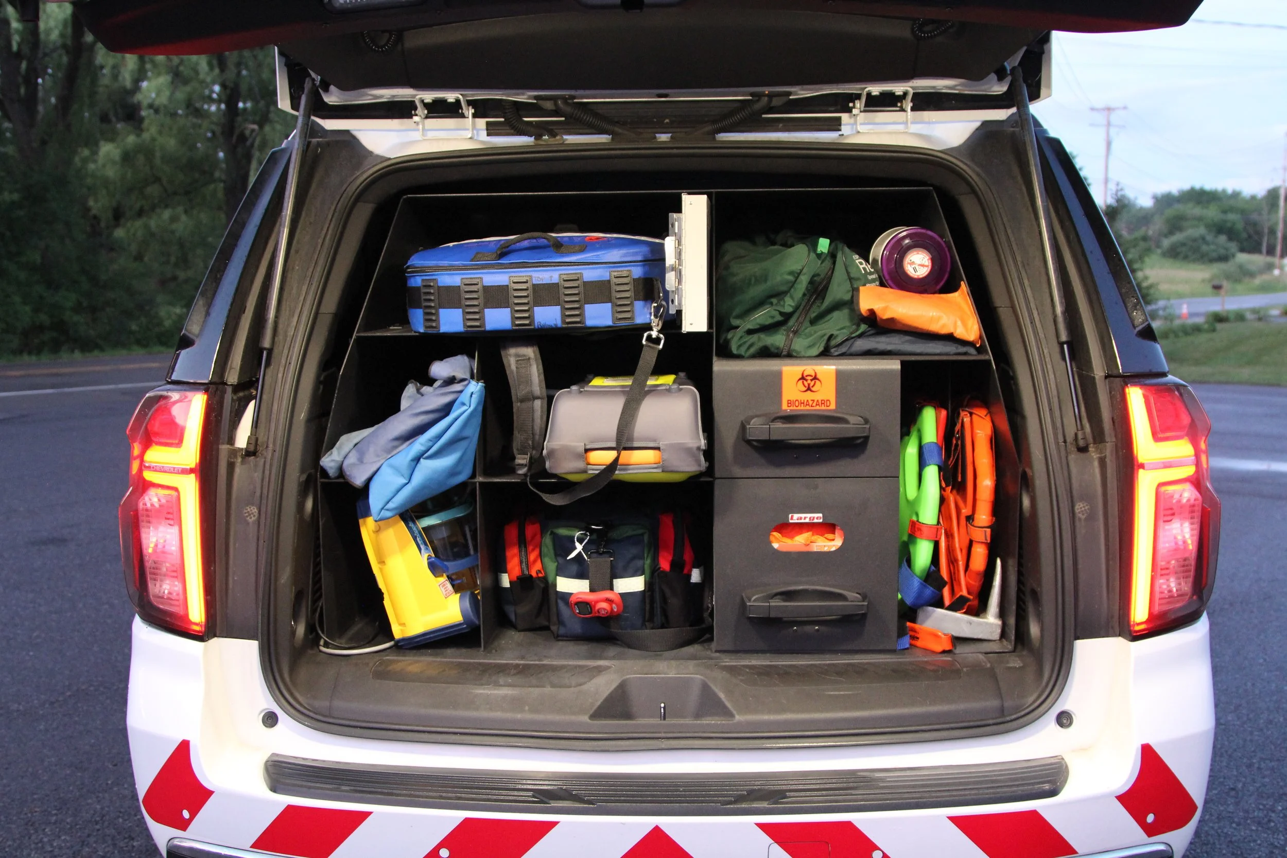 Our EMTs are trained to provide basic life support (BLS) services, patient triage, first aid, and CPR/AED. This vehicle is specifically designed for these purposes.